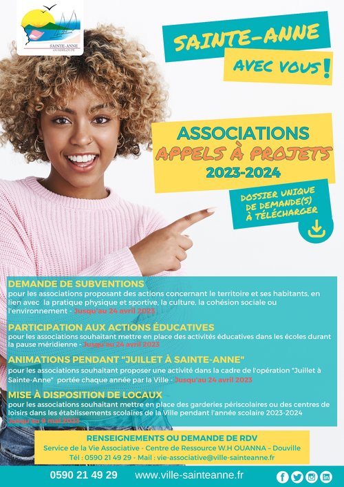 - Appels à projet Juillet à Sainte-Anne : 24 avril 2023