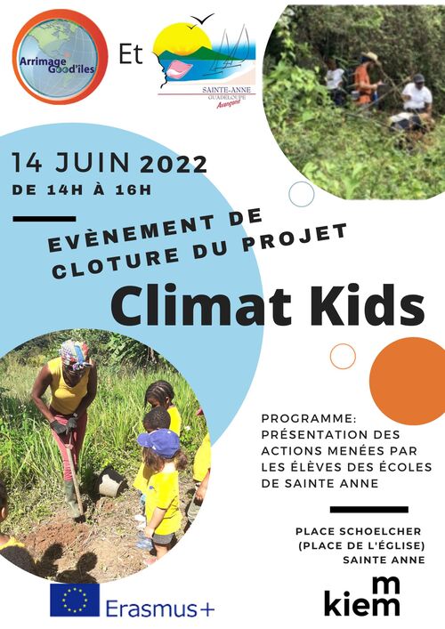 Le projet Climat Kids de l’association Arrimage Good’Îles est financé par le programme Erasmus + et concerne 4 établissements de Sainte-Anne., à savoir le lycée Yves Leborgne, le collège Olympe Ramé Décorbin, l’école maternelle Marcelle Borifax, l’école Montessori Pluie d’étoiles mais aussi KIEM, collège et lycée Montessori situé à Amsterdam aux Pays-Bas. "Le but était de sensibiliser les élèves des deux côtés de l’océan au réchauffement climatique. On a pris connaissance sur chaque territoire de ce qu’il se passait. Et chaque école a réfléchit à un projet de son côté", explique Carine Gauthier, coordinatrice de l’association Arrimage Good’Îles.