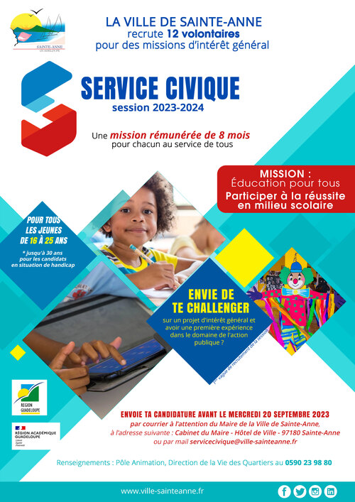 – Les jeunes retenus recevront une indemnité de 600 € net par mois (selon critère sociaux) entièrement financée par la Région Guadeloupe et l’Etat pour une mission d’au moins 24h par semaine.