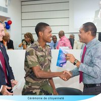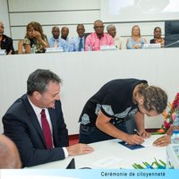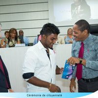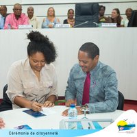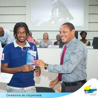 A cette occasion, le maire de la Ville de Sainte-Anne, Christian BAPTISTE et le préfet de région Jacques BILLANT, ont procédé à la remise de la carte d’électeur et du livret du citoyen à 32 jeunes saintannais .Cette cérémonie, organisée par le service Démocratie Locale de la ville, s’est déroulée sous les yeux du commandant de gendarmerie de la brigade de Sainte-Anne, le Capitaine LAVAUD, les anciens combattants, la représentante du Service National et des élus du conseil municipal.