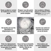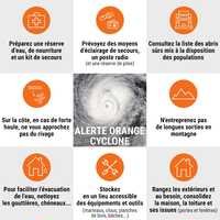 Quels sont les phénomènes attendus à l’approche d’un cyclone ? Quelles consignes respecter par niveau d’alerte ? Que mettre dans votre kit d’urgence ? En cas d’évacuation de votre maison, où devez-vous vous réfugier ?