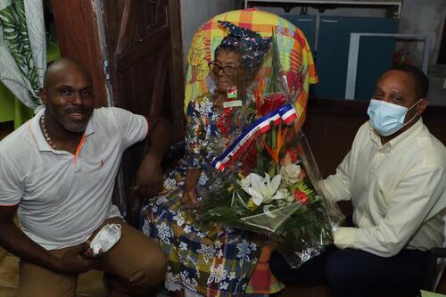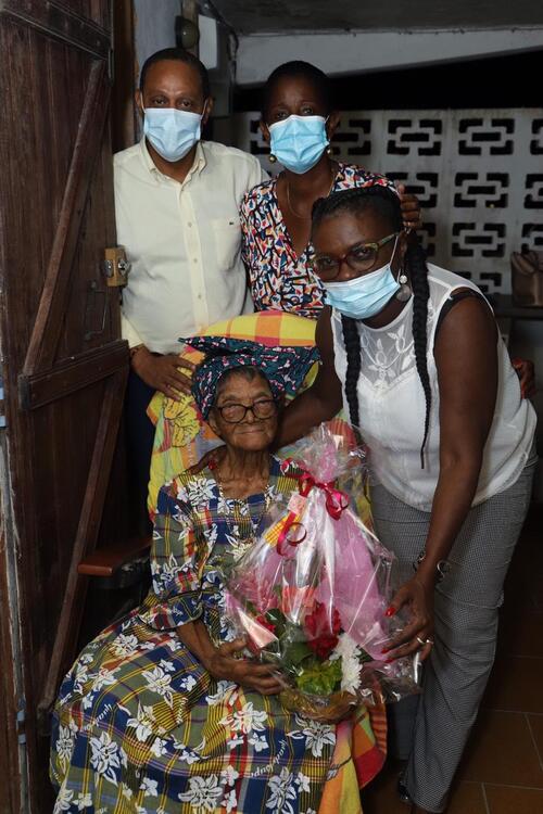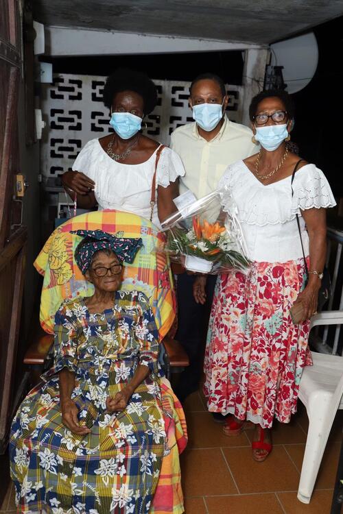 Les équipes du CCAS de la Ville, ses proches, le Maire, une délégation d’élus dont Mme Lydia FARO-COURIOL, 1ère adjointe au maire, Mme Dalila MARIE-JOSEPH, vice-présidente du CCAS et des représentants du club du 3ème âge, dont la Présidente, étaient présents pour l’occasion.