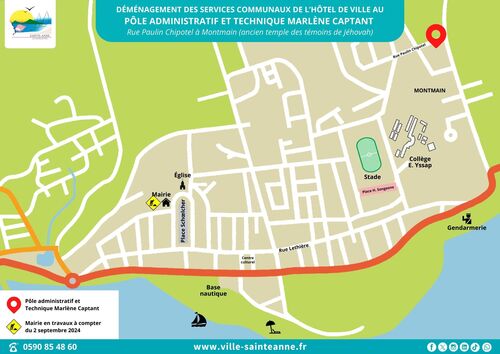 Pendant toute la durée des travaux, les services communaux accueilleront le public au nouveau Centre Communal de Services Administratifs et Techniques Marlène Captant situé au 30 rue Paulin Chipotel à Montmain (ancien temple des témoins de Jéhovah).