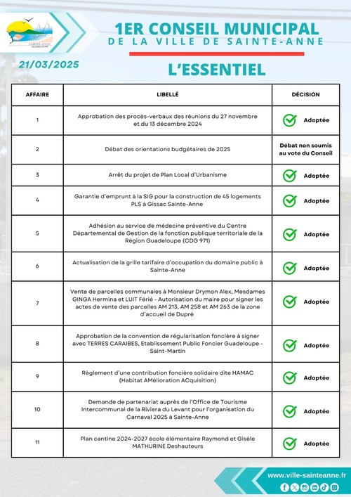 Délibérations du 1er conseil municipal du 21 mars 2025