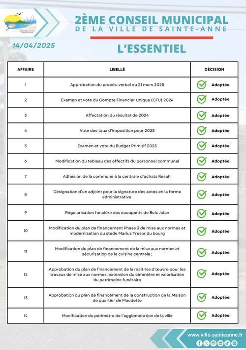Délibérations du 2ème conseil municipal du 14 avril 2025