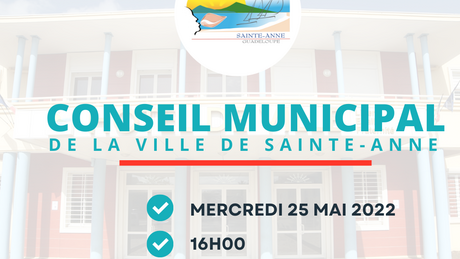 La Ville de Sainte-Anne vous informe de la tenue du prochain Conseil Municipal, le mercredi 25 mai 2022, à 16h00, en...