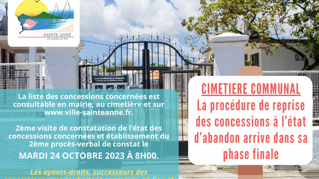La procédure de reprise des concessions à l’état d’abandon engagée dans le cimetière communal de Sainte-Anne, situé à...