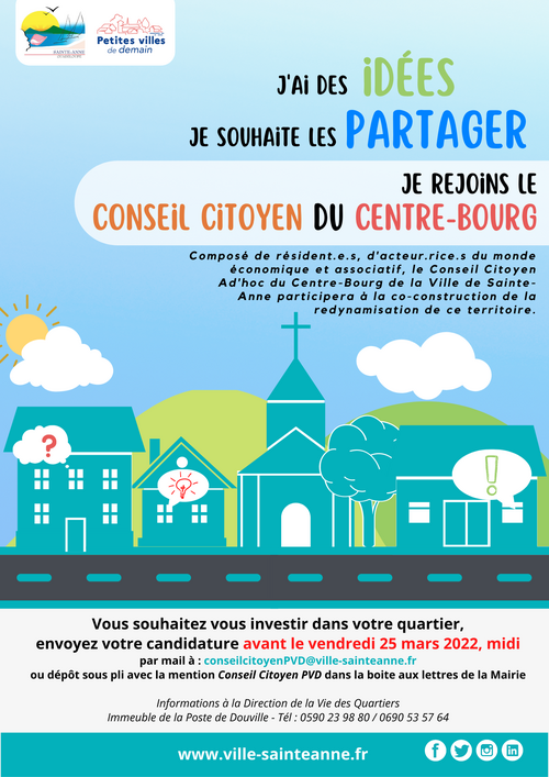 – par mail à l’adresse conseilcitoyenPVD chez ville-sainteanne.fr