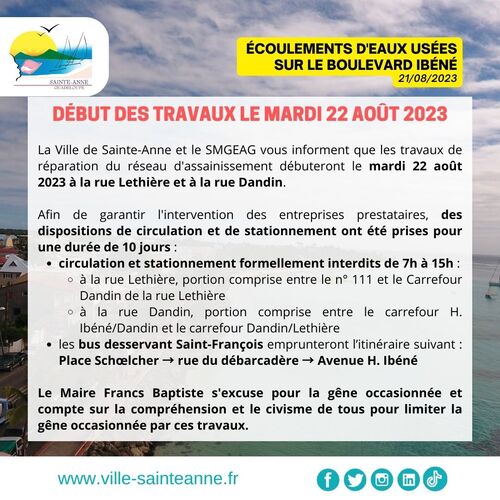 ➕ Le Maire Francs Baptiste s’excuse pour la gêne occasionnée et compte sur la compréhension et le civisme de tous pour limiter la gêne occasionnée par ces travaux.