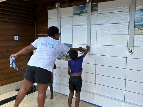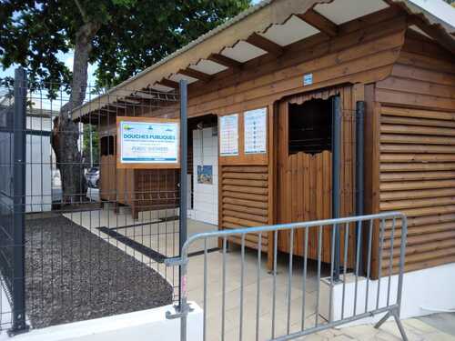L’espace compte 3 douches tout public, 1 douche/vestiaire réservée aux personnes à mobilité réduite et 1 vestiaire tout public. D’ici peu, un éclairage solaire sera ajouté.