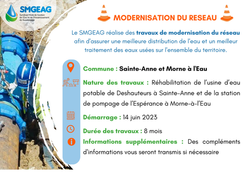 Le SMGEAG dans un souci constant d’amélioration de la distribution de l’eau et du traitement des eaux usées de ses abonnés, réalise des travaux de modernisation sur l’ensemble du territoire.