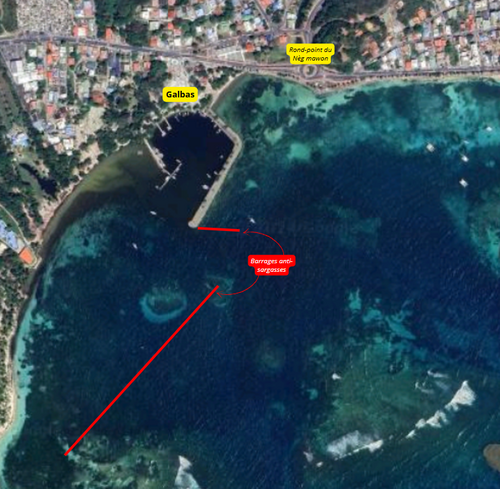 NB : le choix des sites tient compte du trajet des sargasses, qui impactent d’abord l’anse du Bellay, Castaing puis Galbas. La pose en amont aurait entrainer un surplus d’échouages à Galbas.