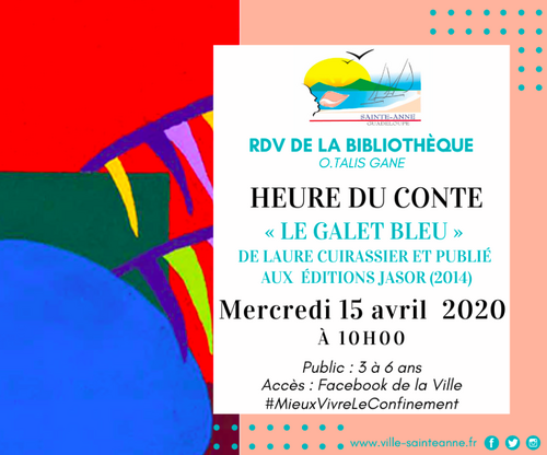 Le mercredi 15 avril, à 10h le Pôle animation vous présente avec l’aimable autorisation des éditions Jasor, " LE GALET BLEU " de Laure Cuirassier publié en 2014.