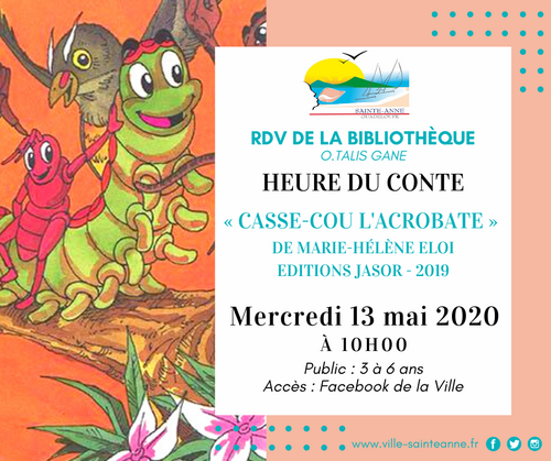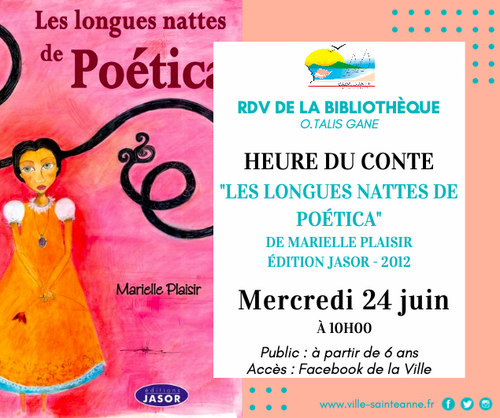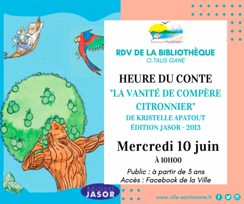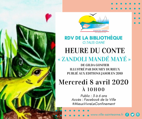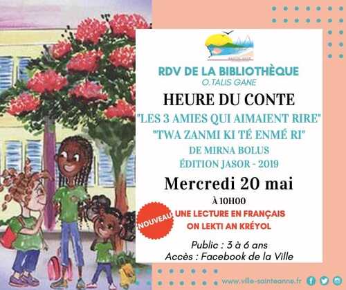 Ce mercredi 20 mai, le Pôle animation vous présente l’histoire des "3 amies qui aimaient rire - Twa zanmi ki té enmé ri". La lecture animée du conte vous sera proposée en français et en créole !!!
