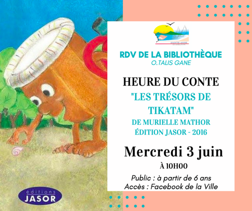 Le mercredi 3 juin le Pôle animation de la Ville vous présente "Les trésors de Tikatam", avec l’aimable autorisation des Editions Jasor.