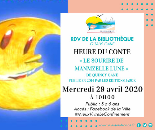 Le mercredi 29 avril, découvrez l’histoire du " Sourire de Manmzelle Lune" écrite par Quincy Gane.