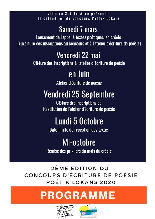 Le concours d’écriture de poésie "Poétik Lokans" de la Ville de Sainte-Anne entend ainsi sensibiliser la population à l’écriture poétique et contribuer à la valorisation de la langue créole.
