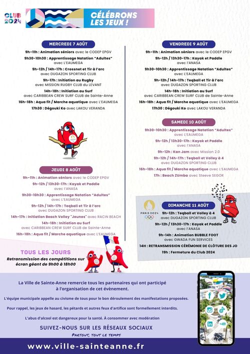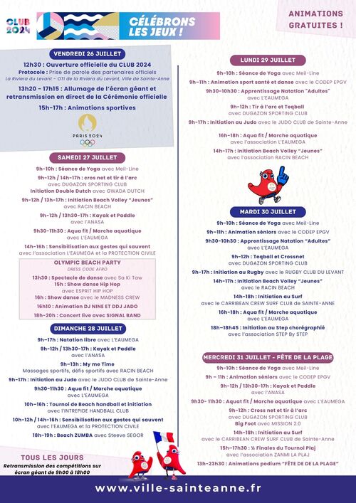 Du vendredi 26 juillet au dimanche 11 août, rejoignez l’espace dédié sur la plage du bourg dès 9h du matin, pour suivre les compétitions en direct sur grand écran comme si vous y étiez !