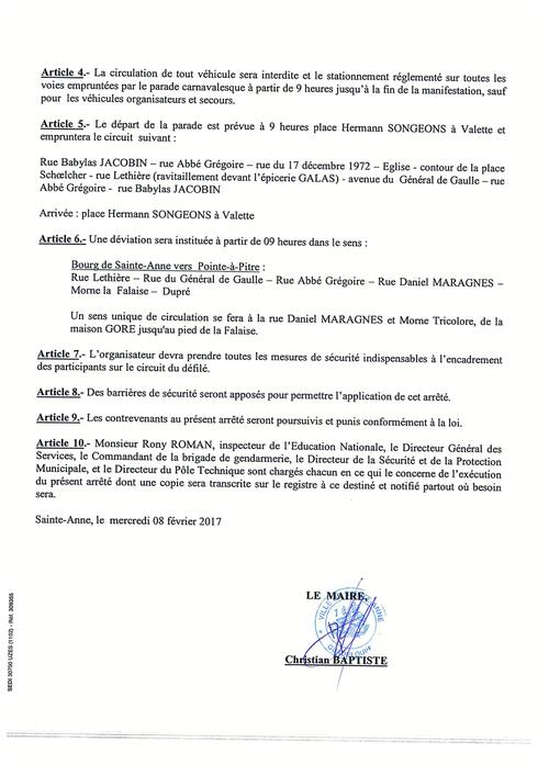 Ci joint l’arrêté relatif au défilé carnavalesque des élèves