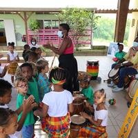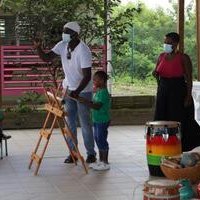 À travers plusieurs animations, les enfants ont ainsi été initiés, par les membres de Lakou Véranda, aux instruments de musique (ka, chacha, tibwa), à la danse, au chant et aux jeux traditionnels (ika ipaka), le tout dans une ambiance conviviale.