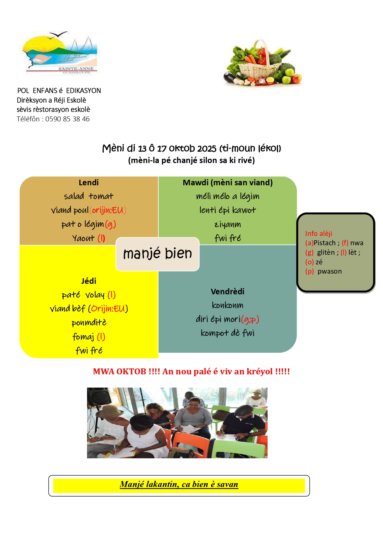 Retrouvez les menus proposés aux élèves des écoles maternelles et élémentaires, au collège, au lycée et en portage.