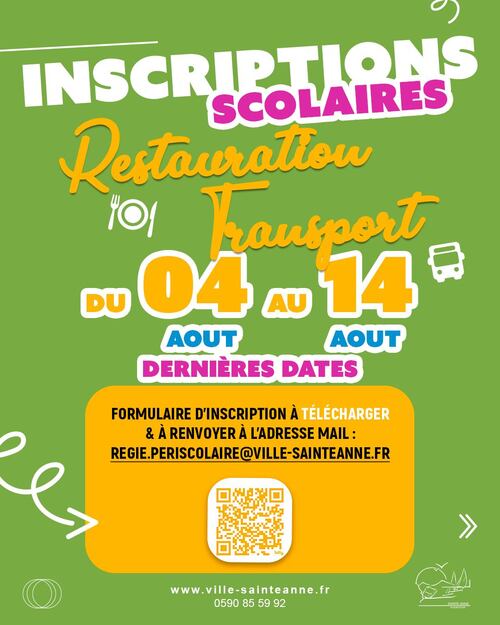 - soit par mail à regie.periscolaire chez ville-sainteanne.fr en spécifiant en objet « Dossier d’inscription à la cantine, à la garderie, ou au transport »