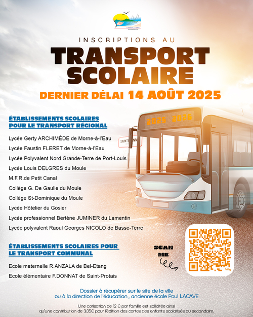 Dans les autres cas de figure, les parents sont invités à se rapprocher du SMT- Syndicat Mixte des Transports pour accomplir les formalités d’inscription en ligne. Info et contact au 0590 60 47 37