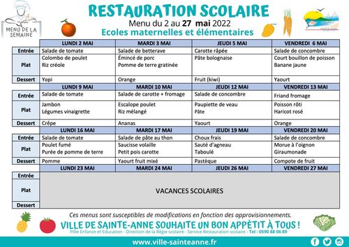 Consultez les menus proposés aux élèves des écoles maternelles et élémentaires