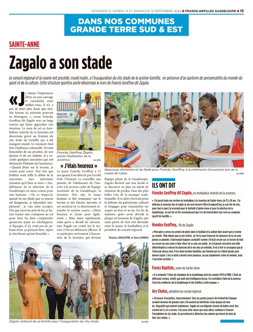 Car Zagalo fait partie de ces personnalités que le président de Région a à coeur d’honorer de leur vivant, pour les remercier de leur contribution dans le rayonnement de notre territoire. Saintannais largement connu pour son parcours artistique en tant que leader de Kannida Nou Ka Travay, Zagalo l’est un peu moins pour son parcours sportif, pourtant tout aussi remarquable. Ancien joueur de la Juventus et de la sélection de la Guadeloupe, Zagalo a été dépeint par ses pairs comme un joueur forçant le respect, une véritable force de la nature qui ne rechignait pas devant le travail pour atteindre ses objectifs.