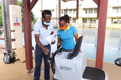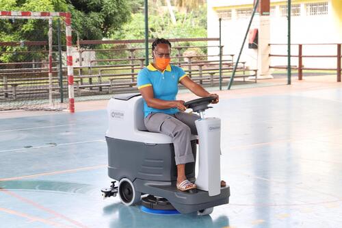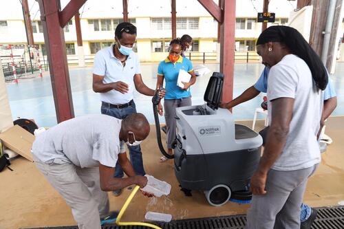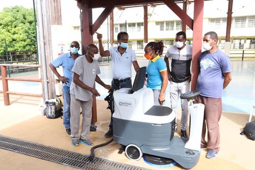 Gymnase de Douville : formation des agents à l’utilisation de la nouvelle auto-laveuse