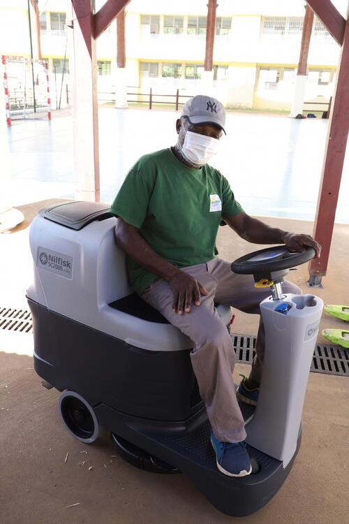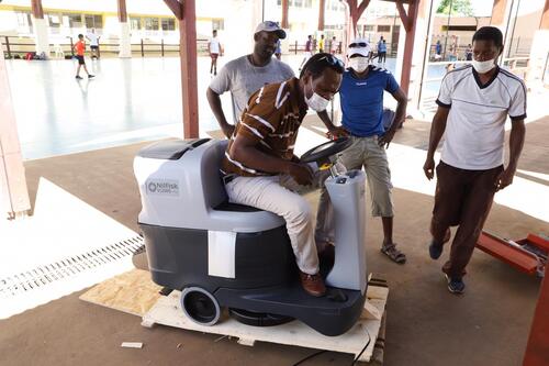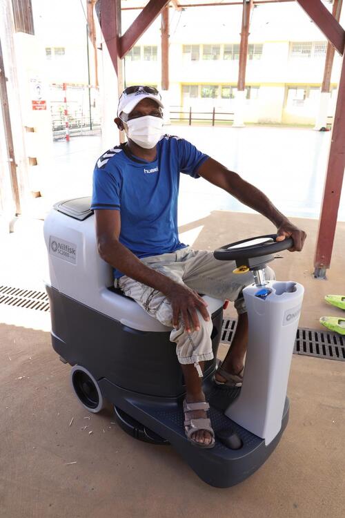 Sport : réception d’une nouvelle machine de nettoyage des sols au gymnase de Douville