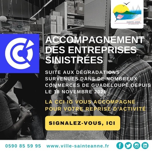 Suite aux dégradations survenues dans de nombreux commerces de Guadeloupe depuis le 18 novembre 2021, la CCI des îles de Guadeloupe recense les entreprises impacté afin de porter votre voix et faire remonter vos difficultés auprès des différentes instances.
