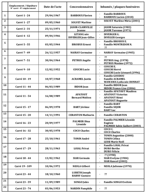 En début de procédure, puis durant tout son déroulement, les listes d’emplacements concernés seront consultables en Mairie, au cimetière communal, en Préfecture et en Sous-préfecture, de manière à ce que tout ayant-droit éventuel puisse être informé.
