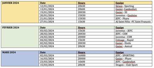 Selon le planning TRIMESTRIEL des rencontres sportives 2024