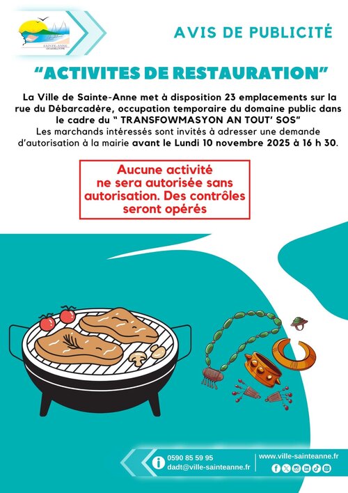 La Direction de l’Animation et du Développement du Territoire –Mail : dadt chez ville-sainteanne.fr - Téléphone : 05.90.85 59 95